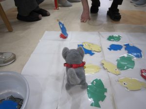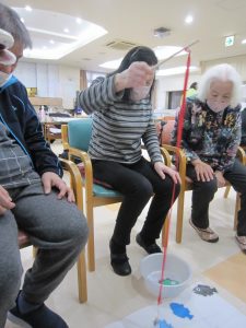 魚釣りゲームでは釣り上げた魚を踏みつけて釣らせないぞ!と阻止する場面も!