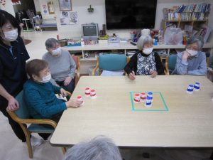 職員が試行錯誤しながら、身体や頭を動かすゲームを日々考えております。