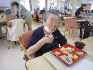 季節や、その月の行事に合わせて、厨房職員も考えて食事を出して頂いてます。今後も、利用者様に喜んで頂けるよう、色々考えていきたいと思います。
