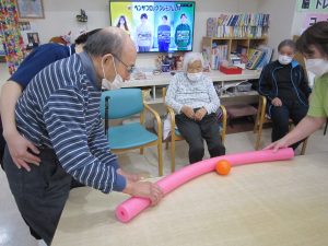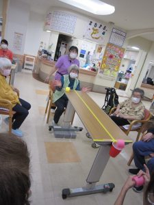 次は、後ろ向きで、投げるボーリング大会