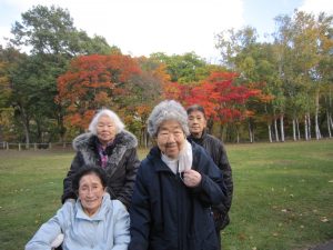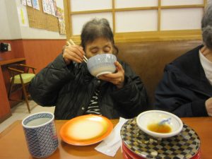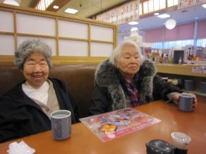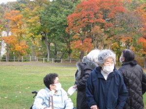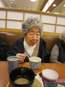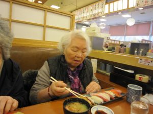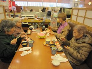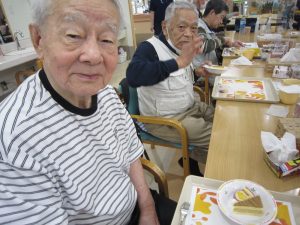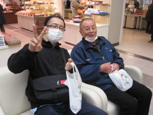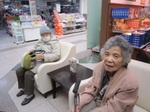 お腹をいっぱいに満たされた後は、散歩がてら、おやつをそれぞれ買ってデイサービスに帰りました。